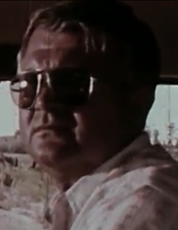 Well, it was near sunset a couple nights ago. Big guy with a beard came in, filled up his tank. He asked if I had seen a bald guy, a Mr. Oakes or Oates or something. Said that he was this guy’s caretaker or something. He said– “I am his eternal overseer” or something like that, I couldn’t understand him much. His whole suit was white and it had some blood on it. It seemed odd.