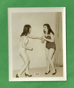 Xenith showed all the command of a seasoned motel wrestler in finishing her opponent off. “I pulled her body up a few times for the benefit of the boys and then took that one-piecer off in one movement. Then I got on top of her rear, worked the chin and ears, flipped her over and pounded on the torso a little. Got her weak in the stomach. Sammy called it after that.”